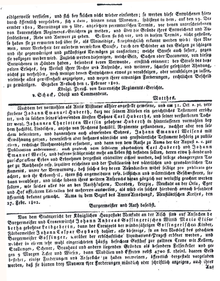 The Bayreuther Zeitung Newspaper Article at American Revolution Hessian Mailing List Website