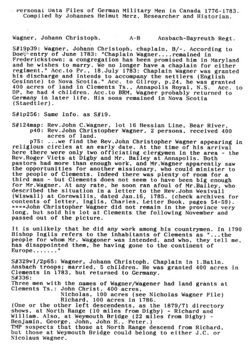 Wagner, Johann Christoph, Went to Nova Scotia
