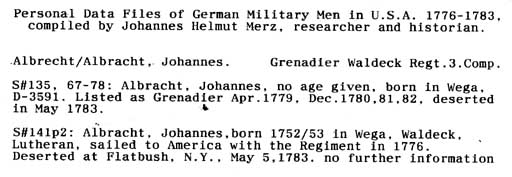 Personal Data Files of German Military Men in USA 1776-1783. Compiled by Johannes Helmut Merz, Researcher and Historian.