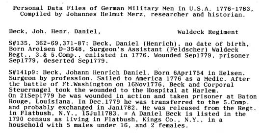 Personal Data Files of German Military Men in USA 1776-1783. Compiled by Johannes Helmut Merz, Researcher and Historian.