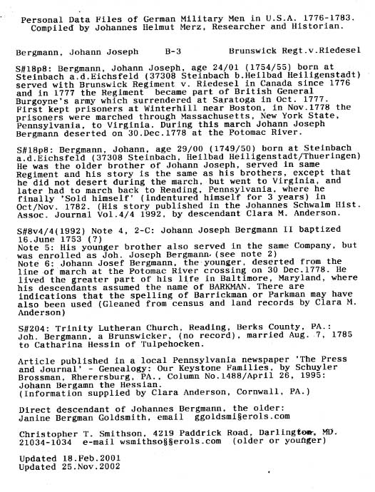 Personal Data Files of German Military Men in USA 1776-1783. Compiled by Johannes Helmut Merz, Researcher and Historian.