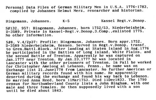 Personal Data Files of German Military Men in USA 1776-1783. Compiled by Johannes Helmut Merz, Researcher and Historian.
