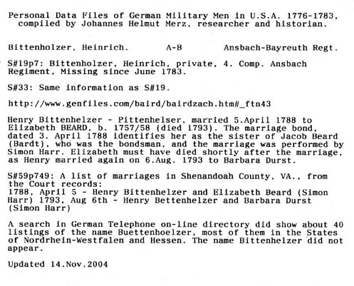 Personal Data Files of German Military Men in USA 1776-1783. Compiled by Johannes Helmut Merz, Researcher and Historian.