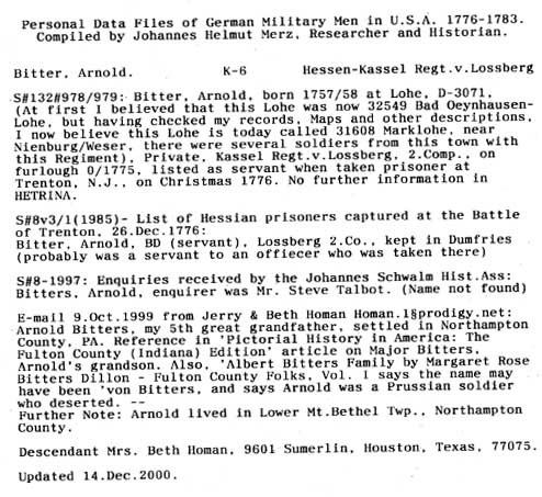 Personal Data Files of German Military Men in USA 1776-1783. Compiled by Johannes Helmut Merz, Researcher and Historian.