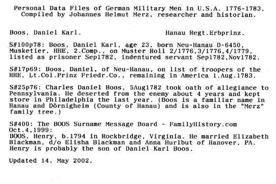 Personal Data Files of German Military Men in USA 1776-1783. Compiled by Johannes Helmut Merz, Researcher and Historian.