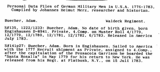 Personal Data Files of German Military Men in USA 1776-1783. Compiled by Johannes Helmut Merz, Researcher and Historian.