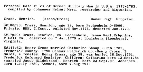 Personal Data Files of German Military Men in USA 1776-1783. Compiled by Johannes Helmut Merz, Researcher and Historian.