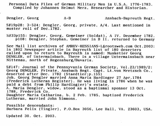 Personal Data Files of German Military Men in USA 1776-1783. Compiled by Johannes Helmut Merz, Researcher and Historian.