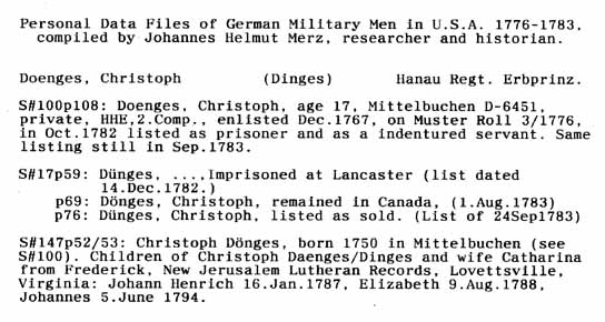 Personal Data Files of German Military Men in USA 1776-1783. Compiled by Johannes Helmut Merz, Researcher and Historian.