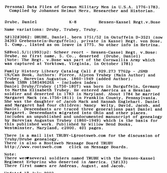 Personal Data Files of German Military Men in USA 1776-1783. Compiled by Johannes Helmut Merz, Researcher and Historian.
