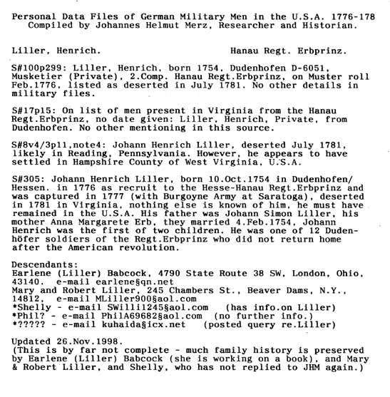 Personal Data Files of German Military Men in USA 1776-1783. Compiled by Johannes Helmut Merz, Researcher and Historian.