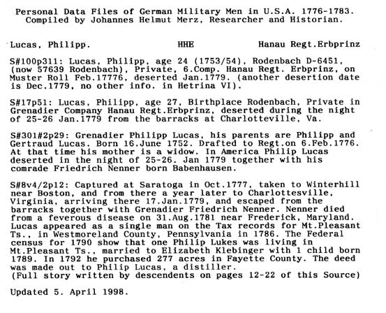 Personal Data Files of German Military Men in USA 1776-1783. Compiled by Johannes Helmut Merz, Researcher and Historian.