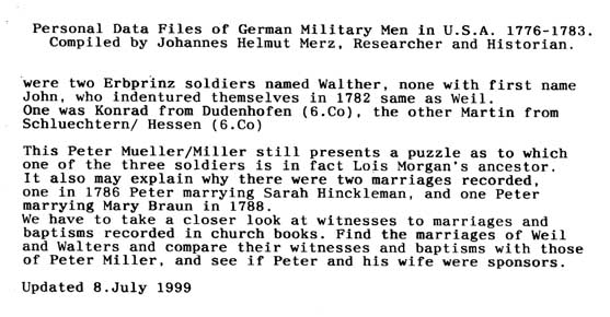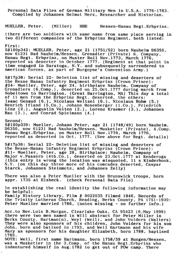 Personal Data Files of German Military Men in USA 1776-1783. Compiled by Johannes Helmut Merz, Researcher and Historian.