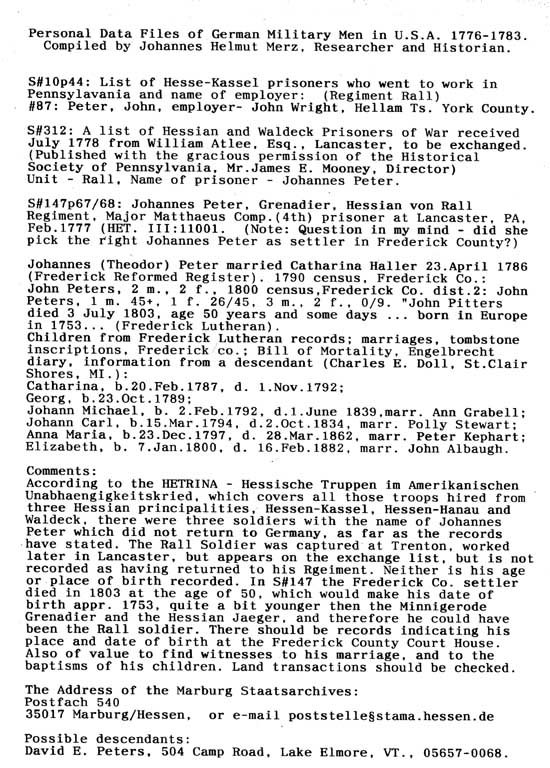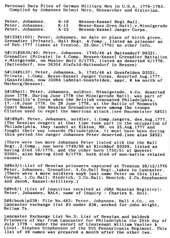 Personal Data Files of German Military Men in USA 1776-1783. Compiled by Johannes Helmut Merz, Researcher and Historian.
