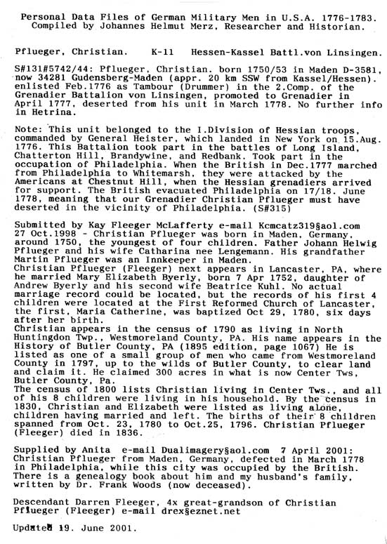 Personal Data Files of German Military Men in USA 1776-1783. Compiled by Johannes Helmut Merz, Researcher and Historian.
