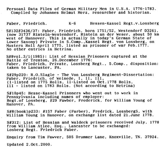 Personal Data Files of German Military Men in USA 1776-1783. Compiled by Johannes Helmut Merz, Researcher and Historian.