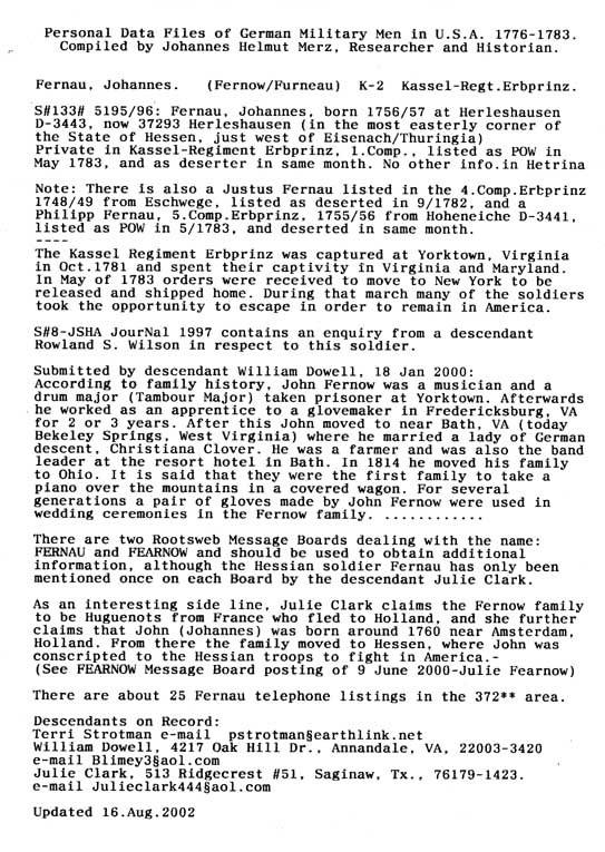 Personal Data Files of German Military Men in USA 1776-1783. Compiled by Johannes Helmut Merz, Researcher and Historian.