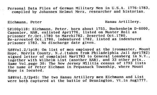 Personal Data Files of German Military Men in USA 1776-1783. Compiled by Johannes Helmut Merz, Researcher and Historian.