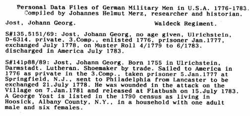 Personal Data Files of German Military Men in USA 1776-1783. Compiled by Johannes Helmut Merz, Researcher and Historian.