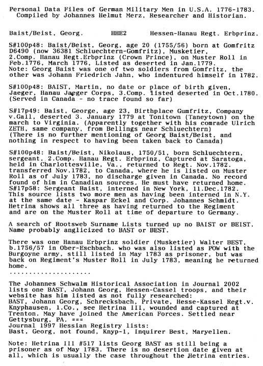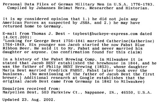 Personal Data Files of German Military Men in USA 1776-1783. Compiled by Johannes Helmut Merz, Researcher and Historian.