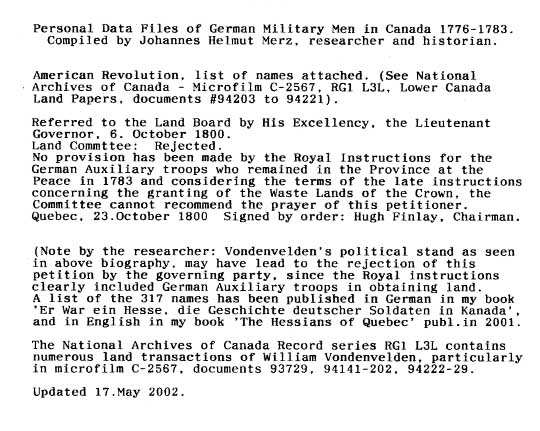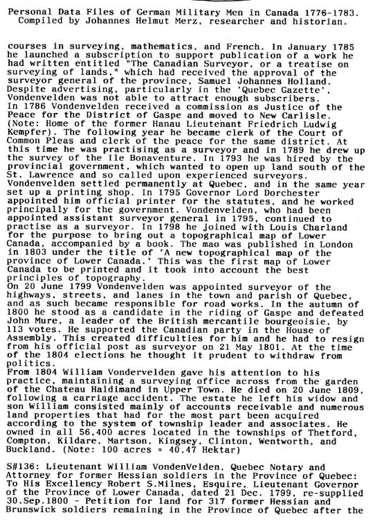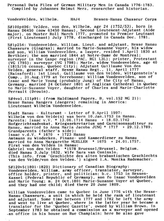 Personal Data Files of German Military Men in Canada 1776-1783. Compiled by Johannes Helmut Merz, Researcher and Historian.