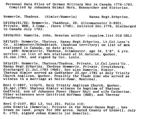 Personal Data Files of German Military Men in Canada 1776-1783. Compiled by Johannes Helmut Merz, Researcher and Historian.