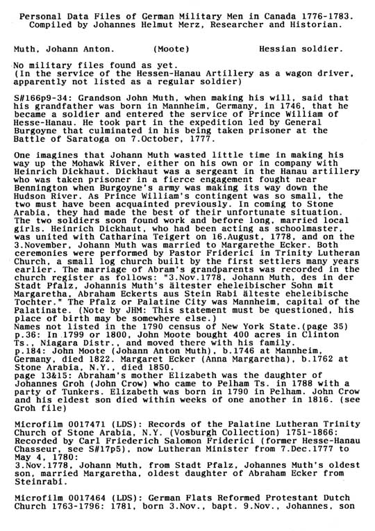 Personal Data Files of German Military Men in Canada 1776-1783. Compiled by Johannes Helmut Merz, Researcher and Historian.