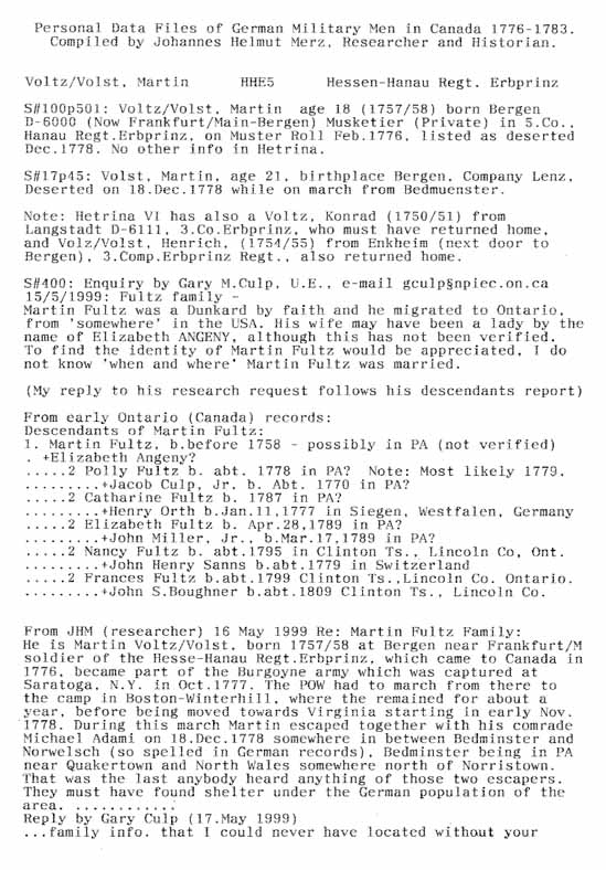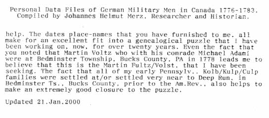 Personal Data Files of German Military Men in Canada 1776-1783. Compiled by Johannes Helmut Merz, Researcher and Historian.