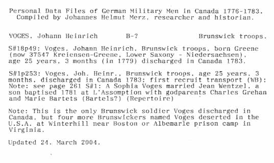 Personal Data Files of German Military Men in Canada 1776-1783. Compiled by Johannes Helmut Merz, Researcher and Historian.