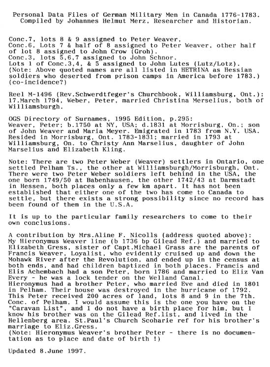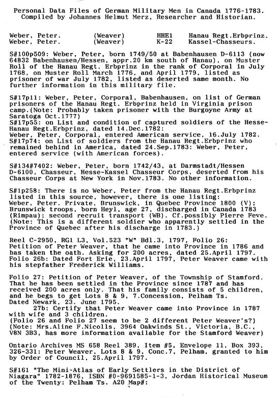 Personal Data Files of German Military Men in Canada 1776-1783. Compiled by Johannes Helmut Merz, Researcher and Historian.