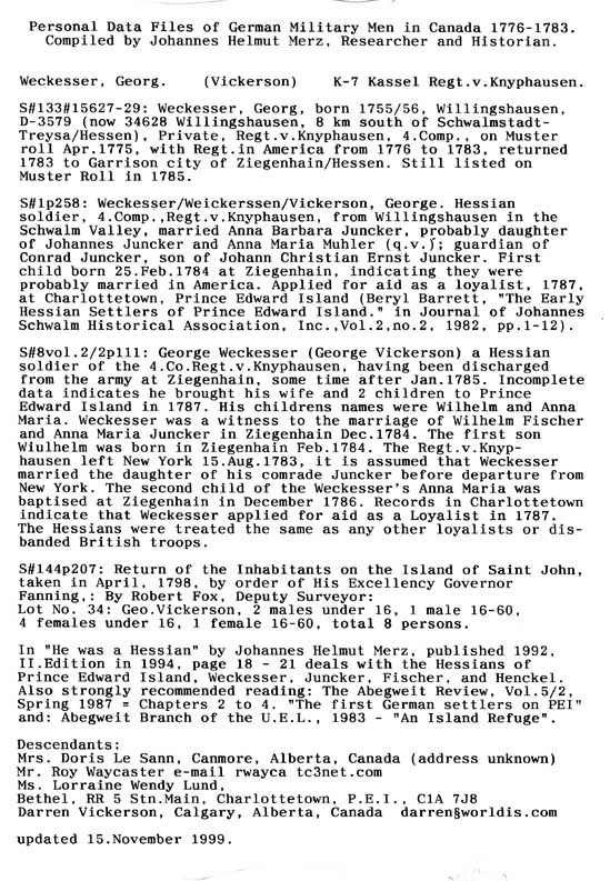Personal Data Files of German Military Men in Canada 1776-1783. Compiled by Johannes Helmut Merz, Researcher and Historian.