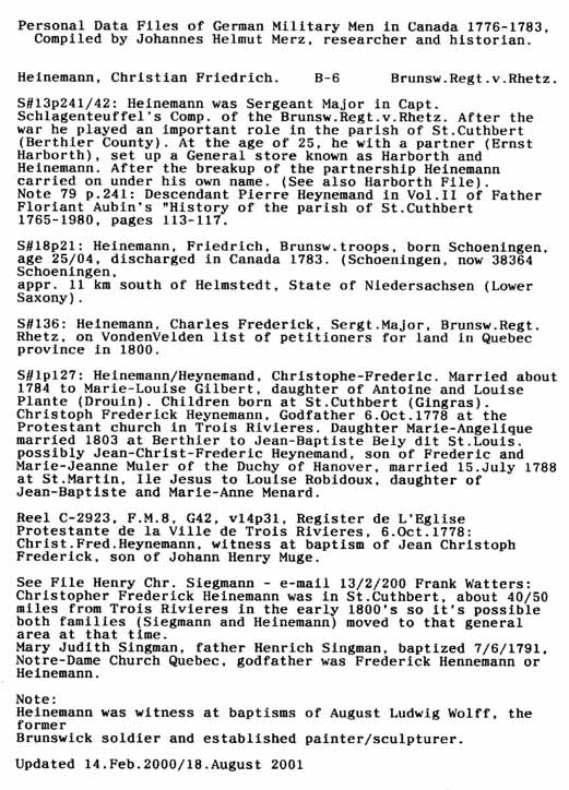 Personal Data Files of German Military Men in Canada 1776-1783. Compiled by Johannes Helmut Merz, Researcher and Historian.